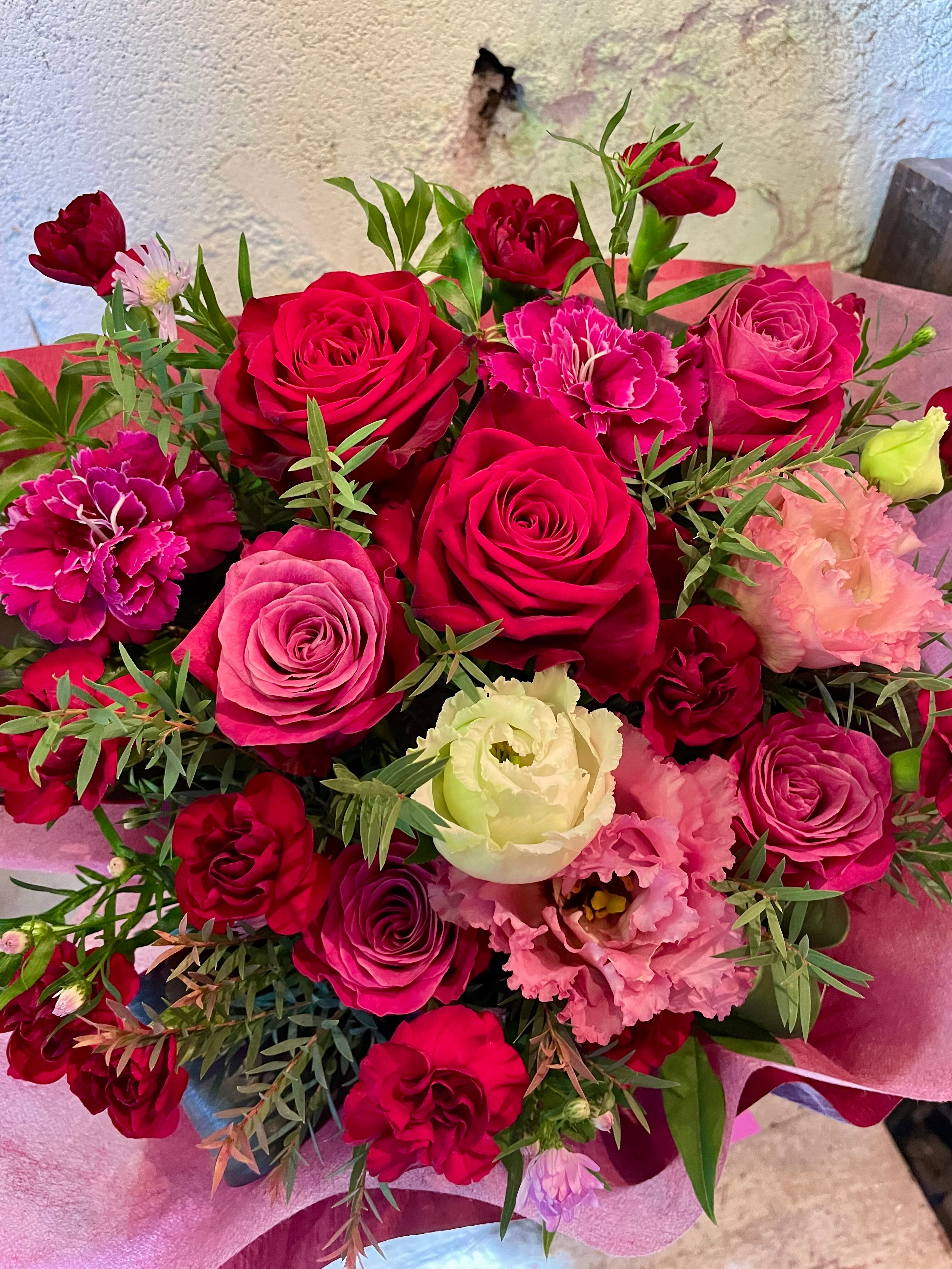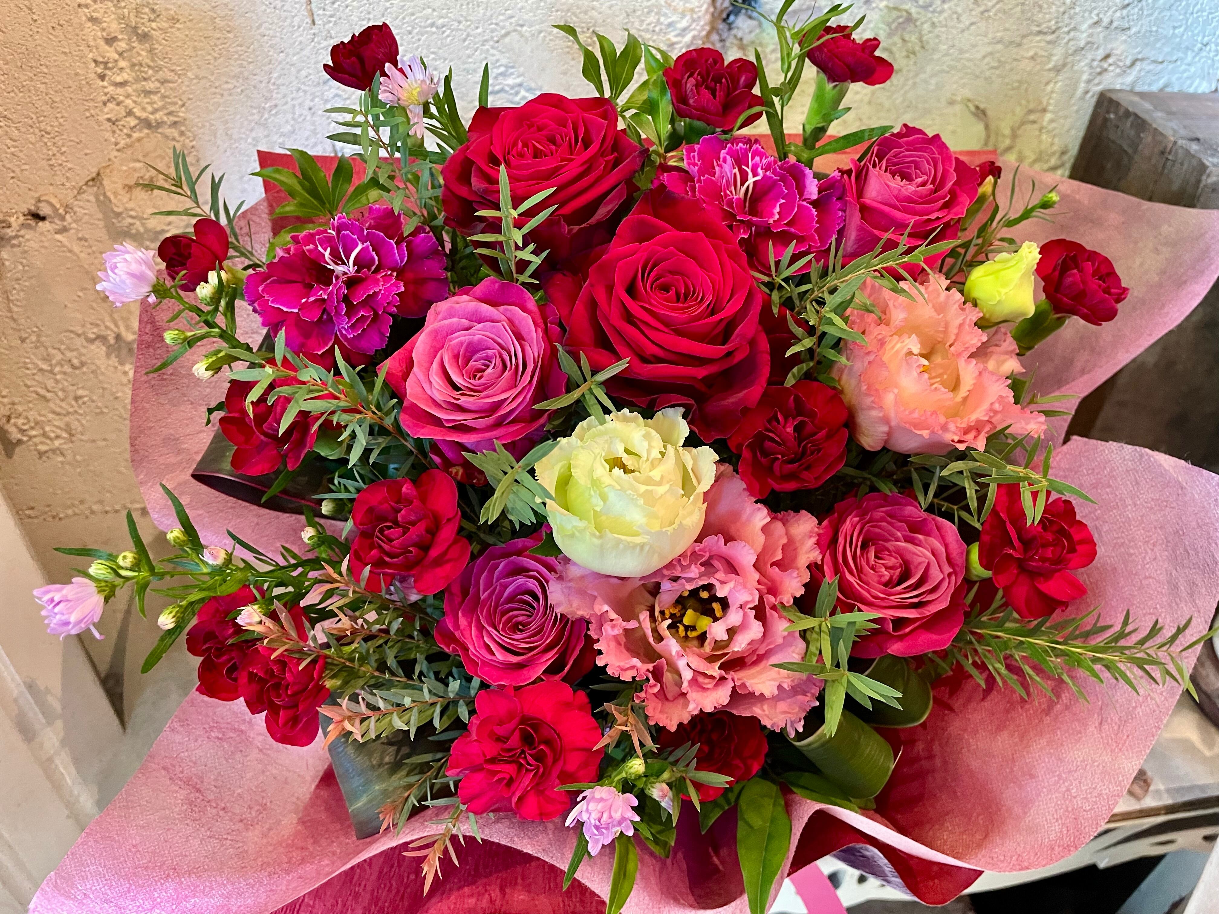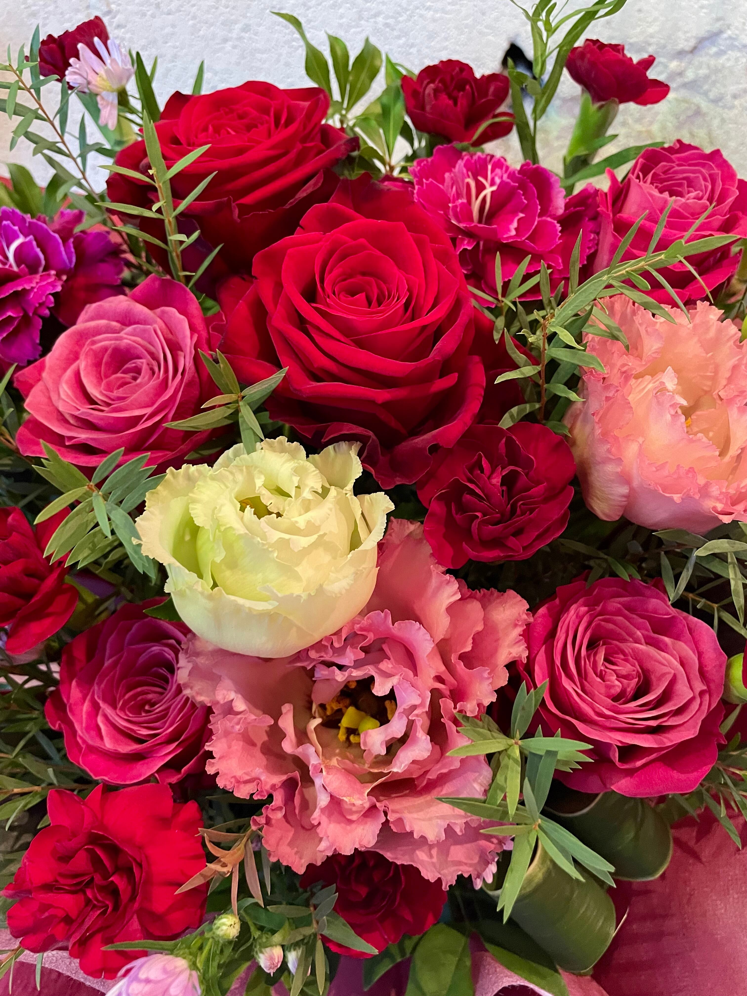 花材:バラ、トルコキキョウ、カーネーション、その他の季節のお花